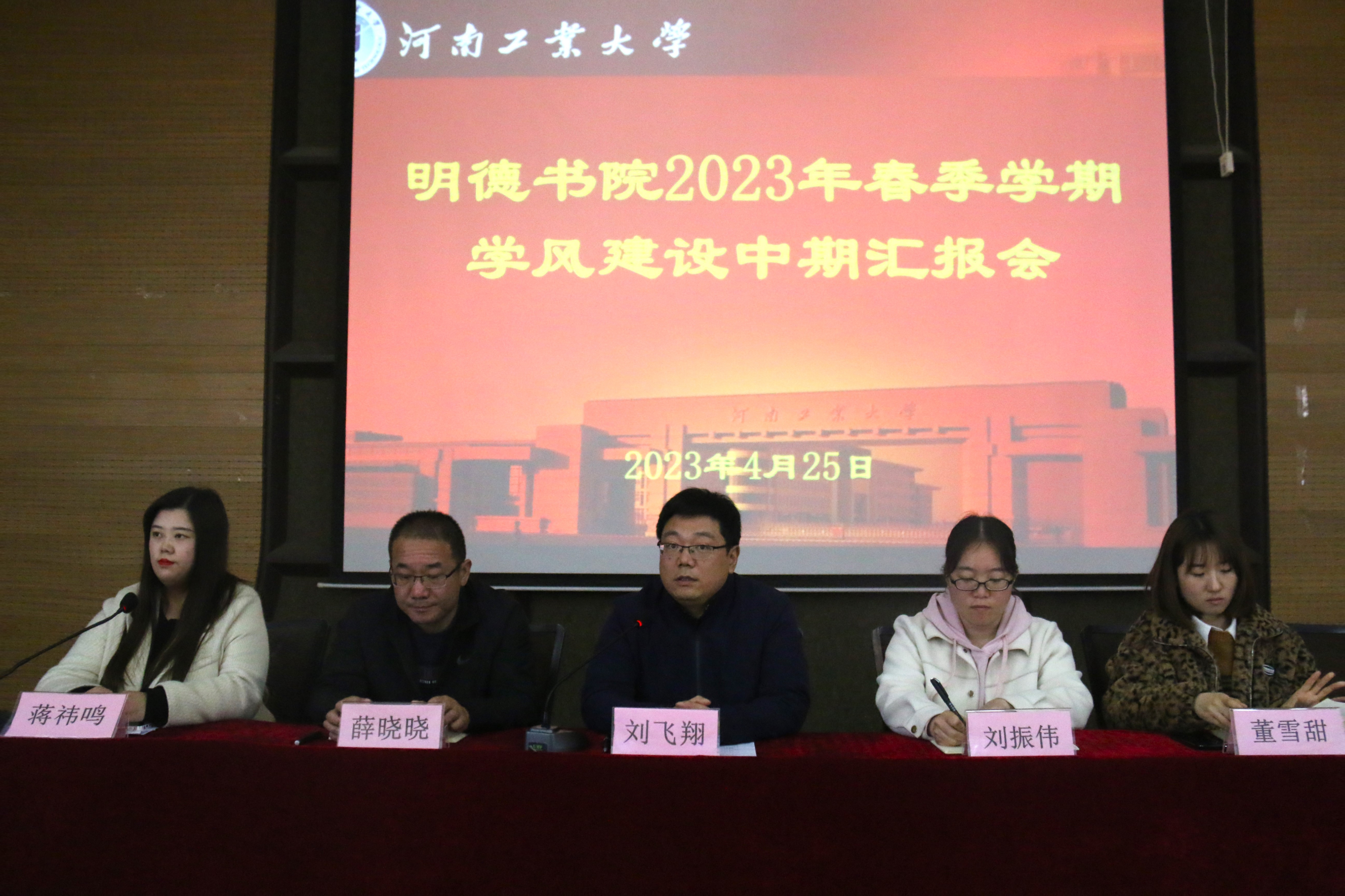 在嵩山路校区学术报告厅召开2023年春季学期学风建设中期汇报会。书院党委副书记刘飞翔、全体2022级辅导员、近300名各专业学生代表参加此次会议。会议由辅导员蒋祎鸣主持。