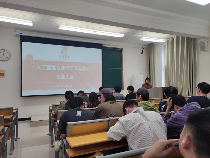 在嵩山路校区实验楼206召开了2023级人工智能专业学生考研交流会,书院副院长张雪萍、团委书记刘振伟、全体辅导员和全体2023级人工智能专业学生参加会议,会议由2023级人工智能专业辅导员薛晓晓主持。