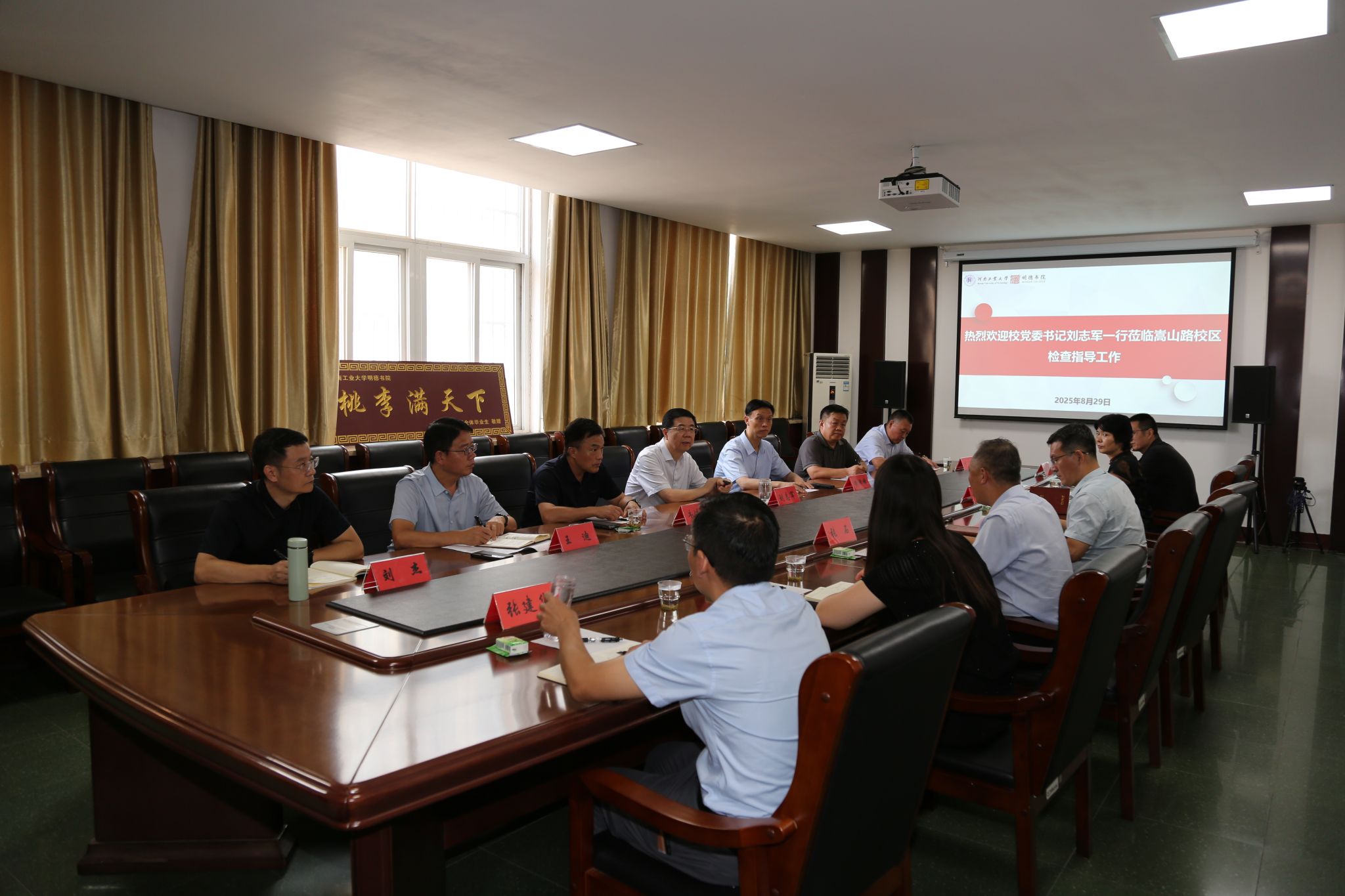 班子成员汇报了相关工作。黄泽峰就加强辅导员队伍建设、深化学生安全稳定工作、完善双院协同育人机制,深化明德社区建设等工作提出要求。牛进平就东校区消防设施改造、食品安全隐患排查整治、校园环境美化、完善多校区管理体制等提出指导意见。