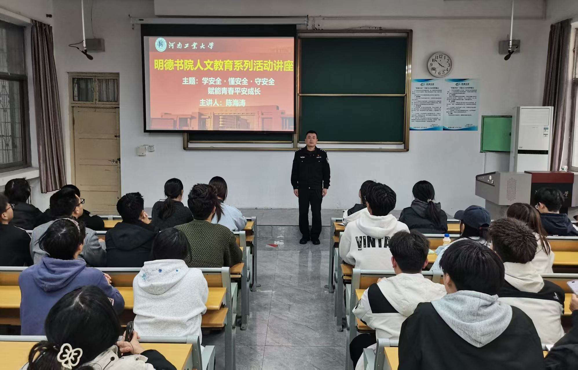 在嵩山路校区1120教室为2025级学生举办了主题为“学安全・懂安全・守安全 赋能青春平安成长”的专题讲座。本次讲座特邀郑州市公安局反诈支队宣传骨干,多年从事打击治理电信网络诈骗犯罪工作的民警陈海涛担任主讲嘉宾。讲座由黄瓜视频