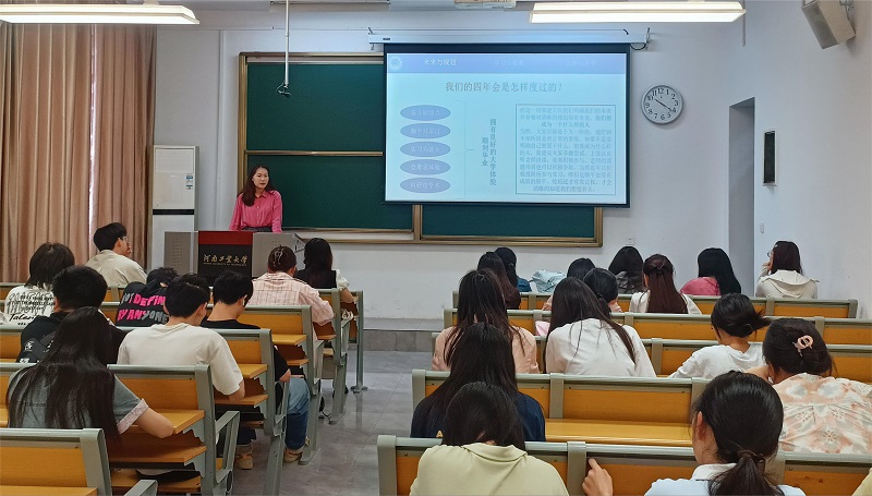 秉持着细致入微、倾囊相授的态度,多位老师积极搭建经验交流平台。物联网工程专业的麦欢欢老师精心策划,诚邀优秀毕业生代表走上讲台,以亲身经历分享经验。工商专业的赵彦飞老师和经济学专业的赵素芳老师也积极邀请同专业的高年级学长学姐为同学们做经验分享,并针对学习规划、考研、考公等备受关注的问题传授宝贵经验。此外,法学专业的王文明老师更是邀请新郑市检察院的检察官开展了一场以“疑罪从无”为主题的专业讲座,为同学们带来了前沿且实用的法律知识。