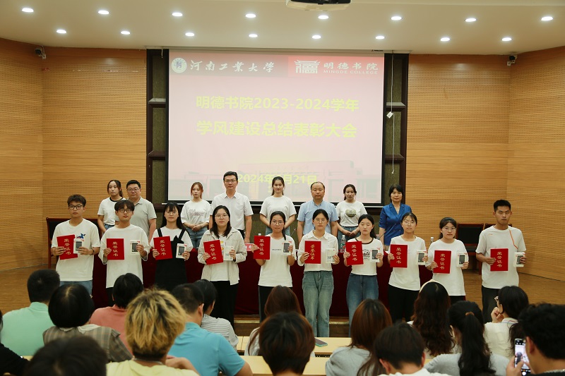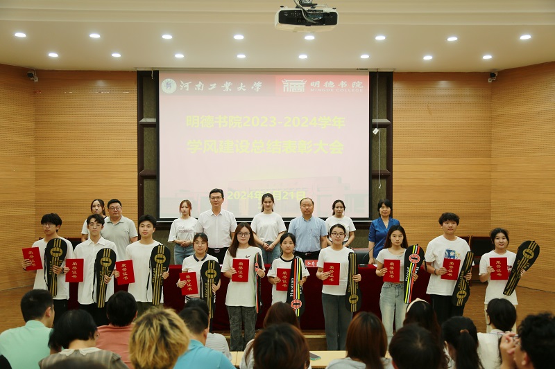 关于表彰2023-2024学年学风建设先进个人和先进集体的决定》,对在学风建设中脱颖而出的“最美学风标兵”、“最美自强之星”、“最美班级日记”和“优良学风班级”等进行了表彰。与会领导向受表彰的集体和个人颁发荣誉证书和奖品,并合影留念。
