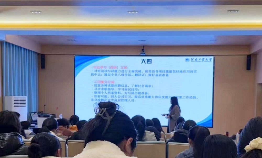 首先,郭崇老师从外语语言学科特点、学习方法、发展趋势、就业去向等方面进行了详细分析,帮助学生对外语语言学习的未来发展有了更加清晰的认识。其次,老师还分享了自己的职业生涯经历,为在场的师生提供了宝贵的实践经验。师生们积极参与互动,郭崇老师耐心解答,从大一到大四的外语语言学习、期末考试备考计划以及毕业后的规划为大家做详细讲解,并与大家分享了在外语教育领域的独到见解和实用建议,现场气氛热烈,学术氛围浓厚。最后,郭崇老师为大家分享了一些期末备考复习心得与提议:第一是时间管理方面,对目标任务设置期限、一次只做一件事、刻意练习等建议。第二是语言实践方面,在外语语言学习方面,不断地练习是不可取代的方式,也是对学习的一种检验。