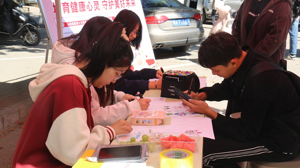 朋辈心理联盟在校区内开展了“培育健康心灵,守护美好未来”心理健康宣传教育活动。