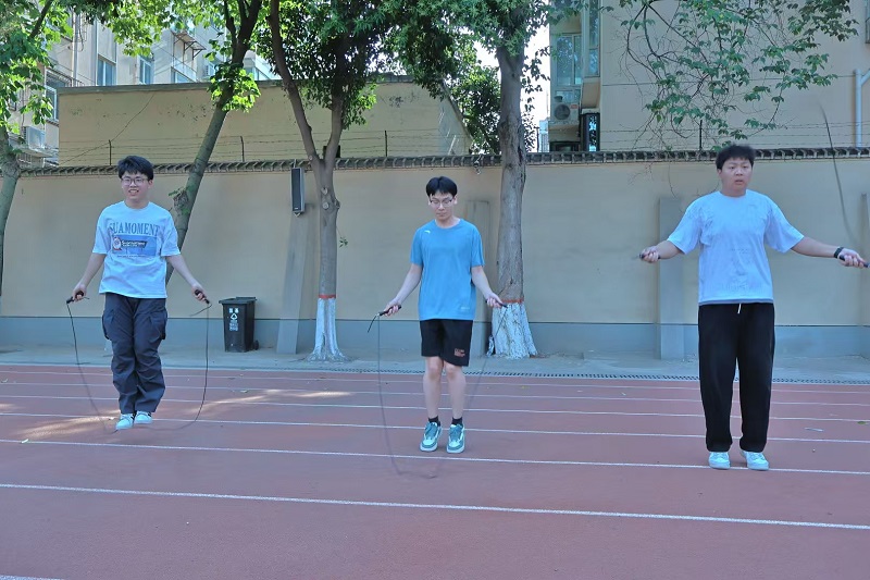 活动过程中,现场气氛热烈非凡,欢声笑语不断。手抽纸杯站点,同学们全神贯注,双手精准抽动纸杯,在紧张刺激中收获专注带来的成就感;绕口令大挑战环节,同学们挑战口齿与反应速度,有人一气呵成引来喝彩,有人因小失误引发全场欢笑,让气氛更加轻松愉悦,压力也随之消散;极速跳绳挑战站点更是将气氛推向高潮,同学们如飞燕般轻盈跳跃,相互鼓励竞争,尽显青春朝气,整个操场都充满了活力。