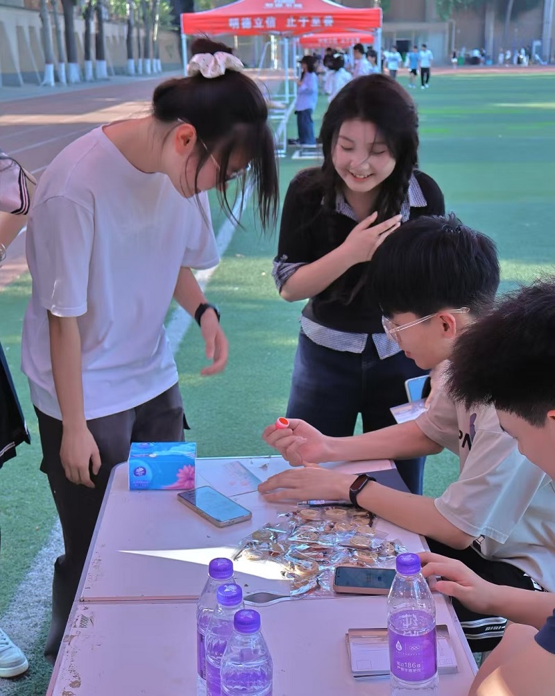 活动伊始,同学们在签到处有序领取明信片,每完成一个游戏任务,就能收获一枚专属图章,集齐六枚即可兑换奖品。这一奖励机制点燃了同学们的参与热情,大家跃跃欲试,迫不及待地奔赴各个游戏站点。