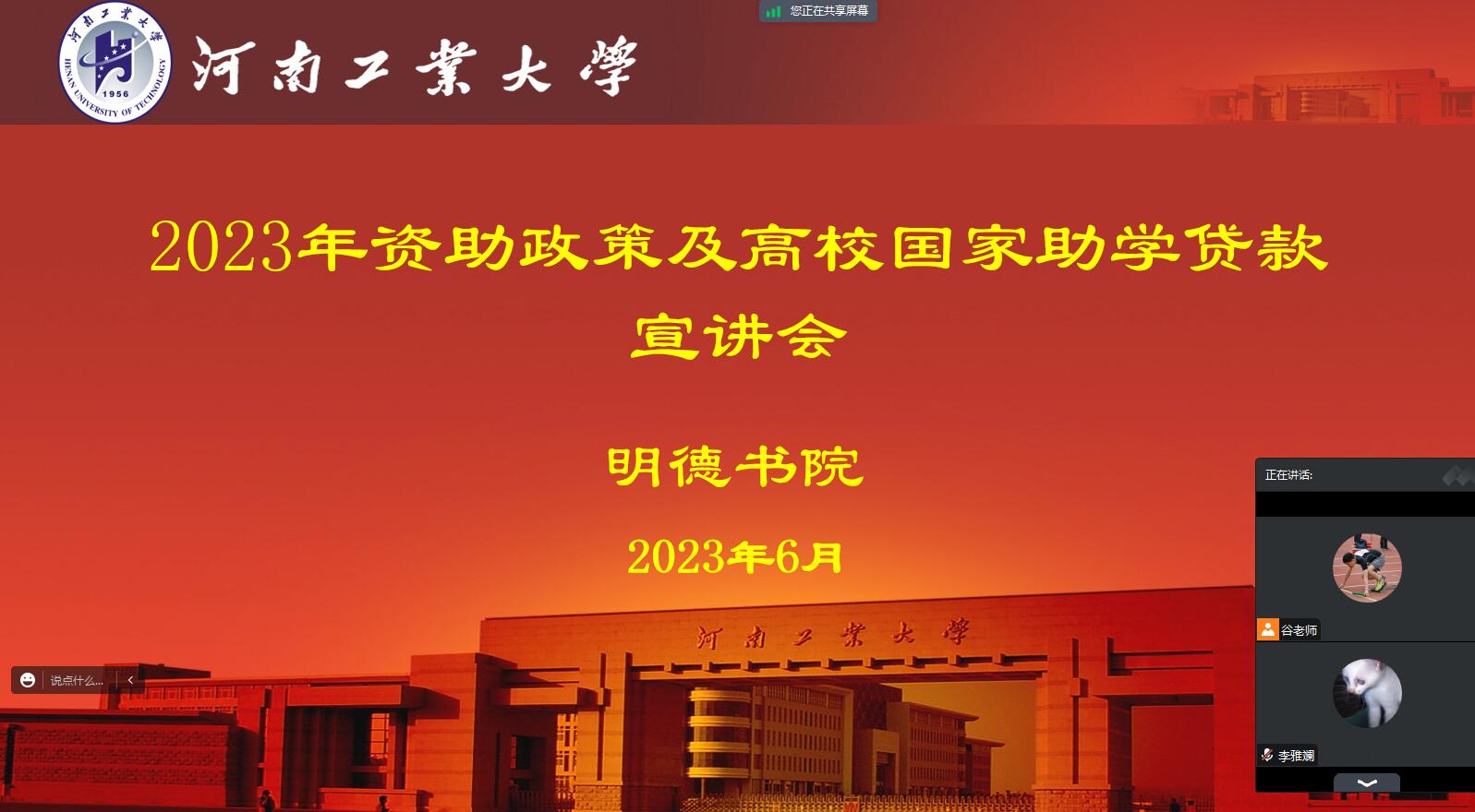 于6月28日上午召开了学生资助政策及高校国家助学贷款宣讲会。会议采取线上举行,学工办主任王荣健、书院三级民主评议小组人员及学生代表参加了此次会议,会议由谷保材老师主持。