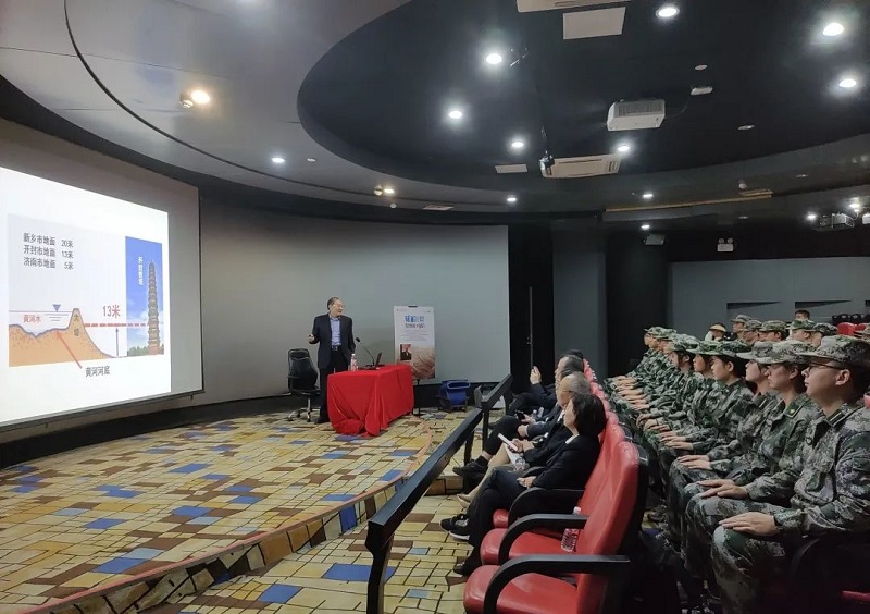 河南省首席科普专家,黄河水利科学研究院正高级工程师姚文艺博士为现场观众们讲述了《破解地球生态癌症的密码》,不仅带大家认识砒砂岩的前生后世,还介绍了科学家们治理它的神奇妙招,采用釜底抽薪的方式解决黄河中的泥沙沉积问题,建设了当地良好的生态环境,加快了整个黄河流域生态修复治理的进程。队员们认真聆听了姚文艺教授的讲座,对于“石头有毒,地球生态癌症”这一问题有了更为丰富的认识,感受了亿万年前地球上的生物多样性,以及它们在地球历史上的重要作用。讲座结束后,队员们向姚文艺教授就目前黄河治理的相关保护问题进行了交流,并收到教授亲笔签发的《石头有毒》珍贵图书。